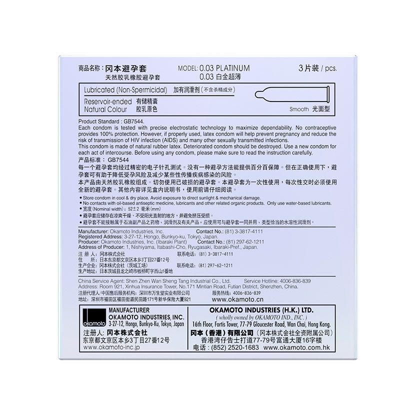 【避孕润滑】冈本003白金3只装
